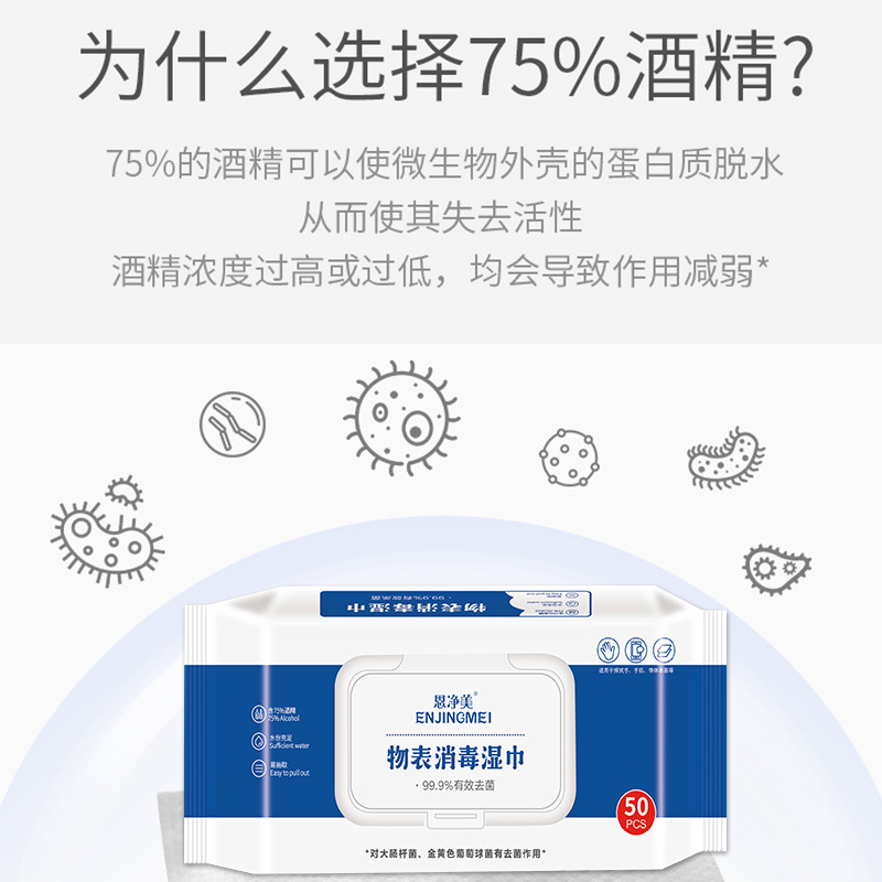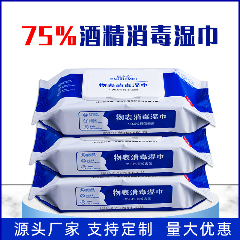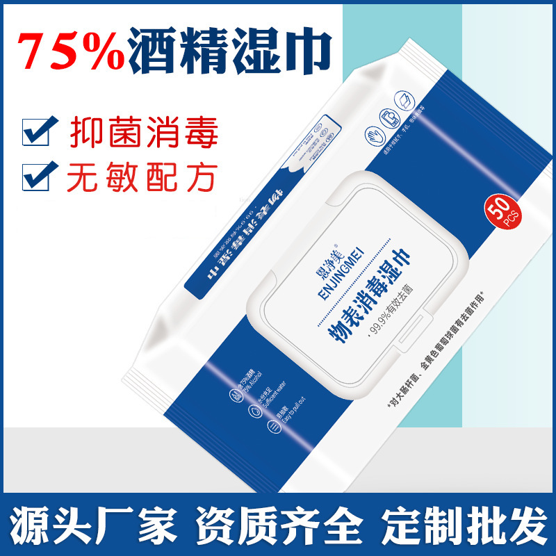 厂家直销免洗消毒湿巾湿纸巾便携75%酒精湿巾50片一次性湿巾批发