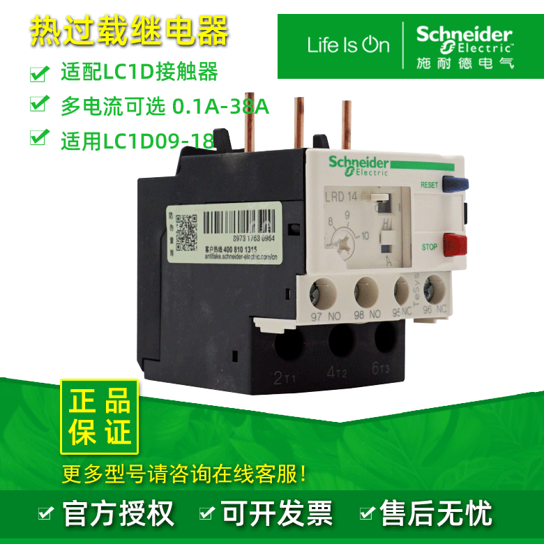 施耐德热继电器LRD过载过热保护3极热过载继电器LRD04C电动机保护