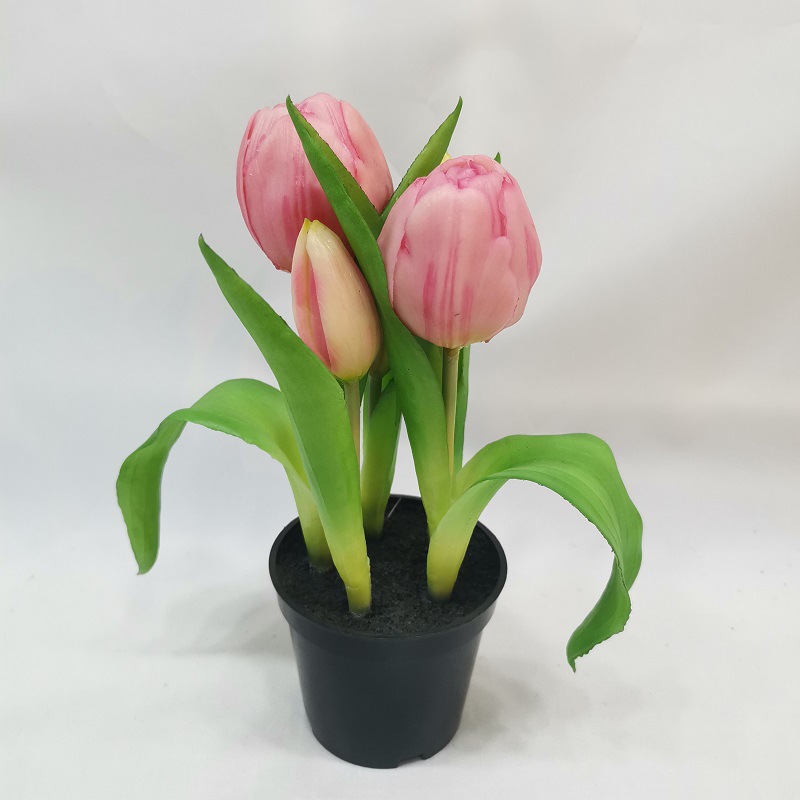 5头塑料盆栽郁金香 郁金香盆景田园风格家居装饰假花橱窗婚庆装饰